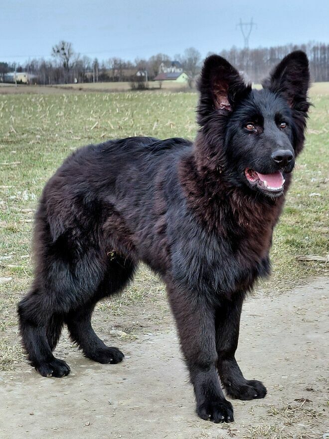 Czarny Piesek Owczarek Niemiecki Długowłosy